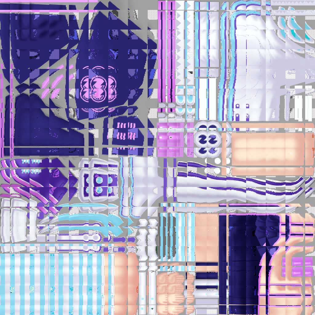 After finishing a first version of White Heart's texture and inserting it back into the game, I noticed that her right arm was missing and the right nipple was cut in half.